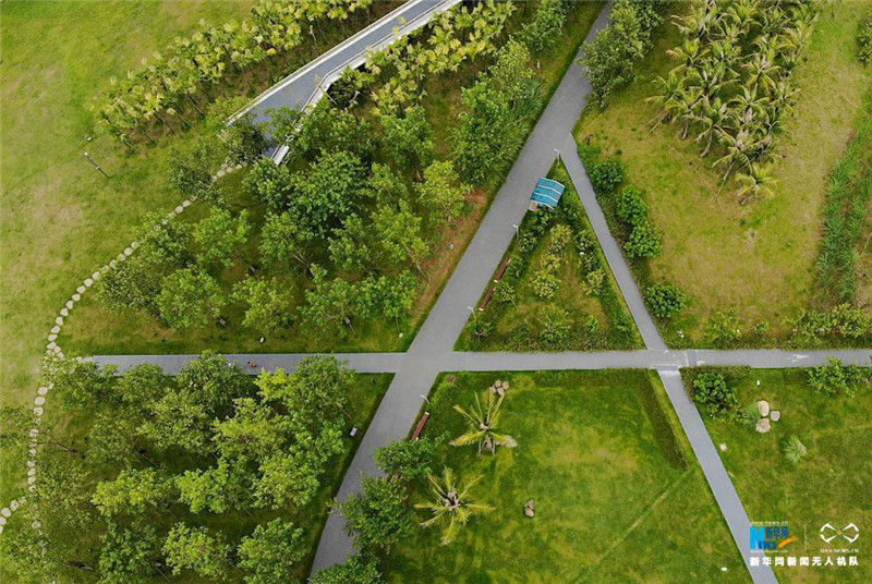 凤翔湿地公园内的休闲栈道。新华网 张斌 摄