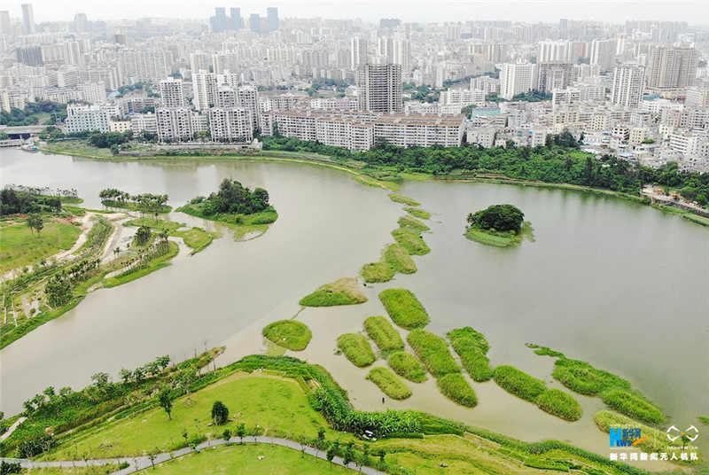 美舍河沿岸从“两面光”恢复为自然河岸。新华网 张斌 摄