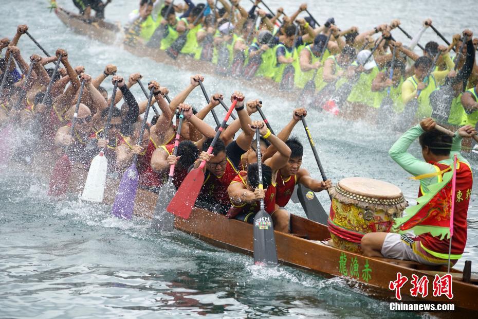 6月18日正值端午节,逾百年历史的香港仔龙舟竞渡大赛在香港仔避风塘举行。该龙舟赛是香港最具传统渔港特色的龙舟赛。全日赛事共33场,其中有十支大木龙舟队参加比赛,大龙参赛规模为全港之最。 中新社记者 张炜 摄
