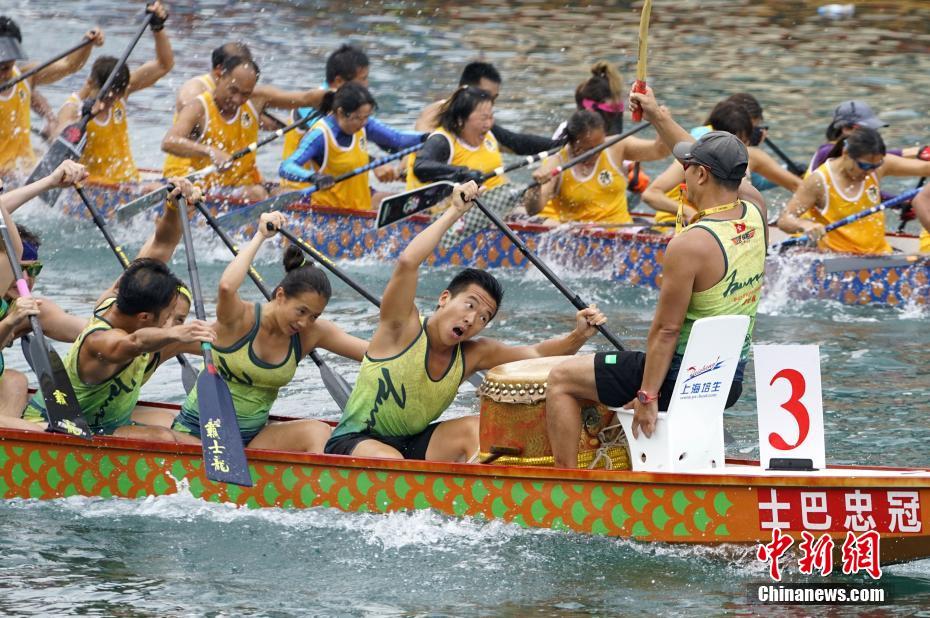6月18日正值端午节,逾百年历史的香港仔龙舟竞渡大赛在香港仔避风塘举行。该龙舟赛是香港最具传统渔港特色的龙舟赛。全日赛事共33场,其中有十支大木龙舟队参加比赛,大龙参赛规模为全港之最。 中新社记者 张炜 摄
