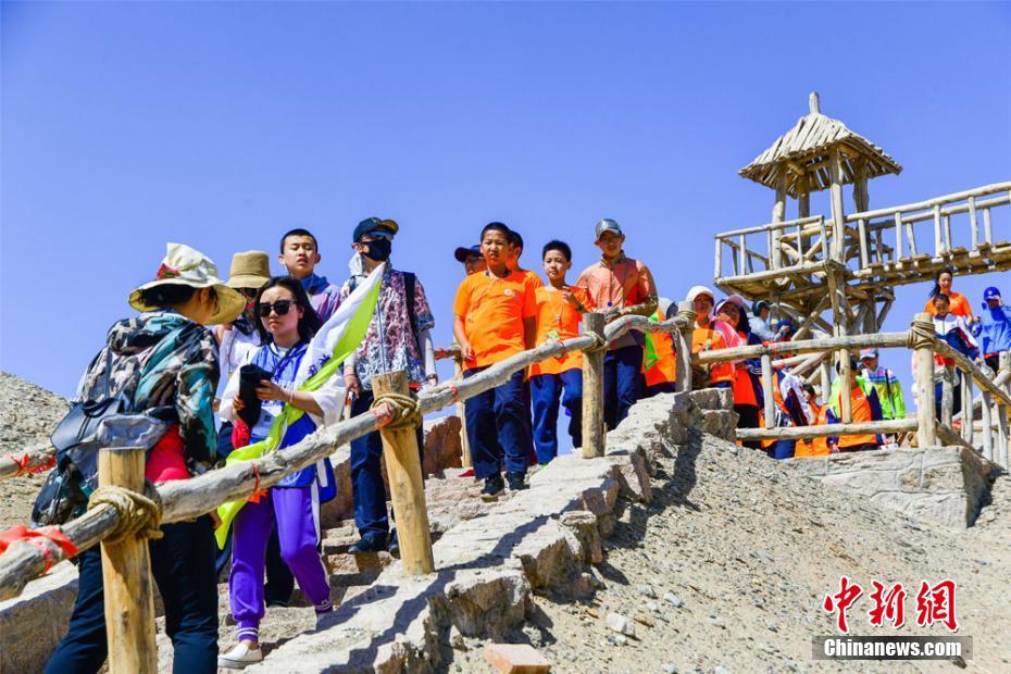 敦煌阳关景区新开辟的阳关栈道旅游项目,端午节期间吸引众多游人体验。王斌银 摄
