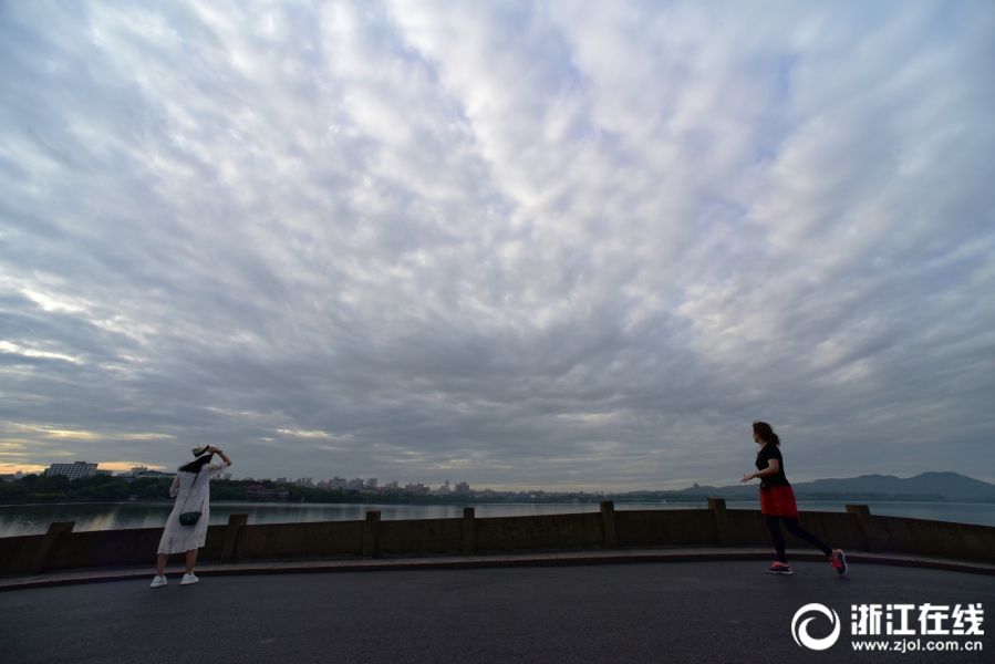 6月19日早晨,杭州西湖上空厚云密布,梅雨季也即将开启。(浙江在线拍友 里尔 摄)