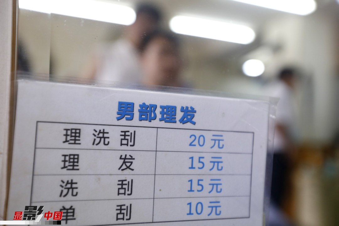 图为孔雀理发店内展示的男士理发价格。新华网 姜冰摄