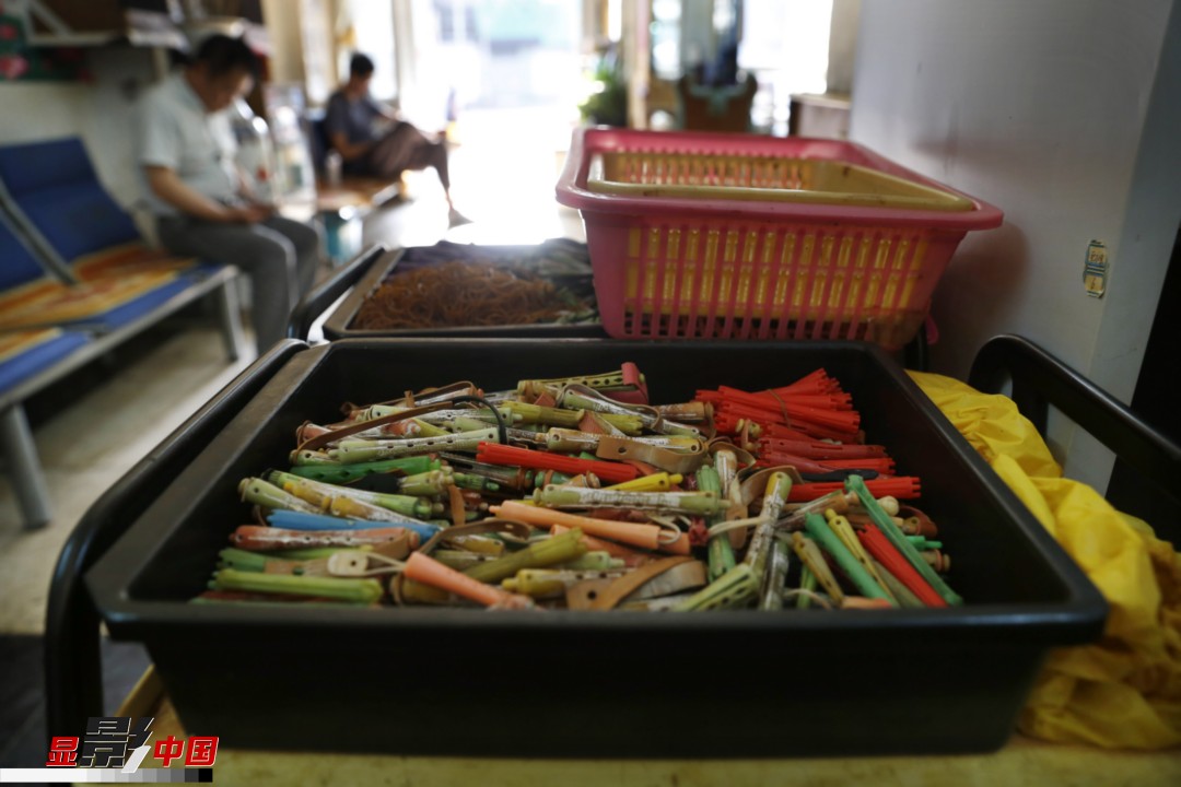图为孔雀理发店内的传统烫发设备。新华网 姜冰摄