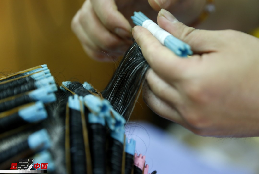 图为理发师李涛在为顾客烫发。新华网 姜冰摄