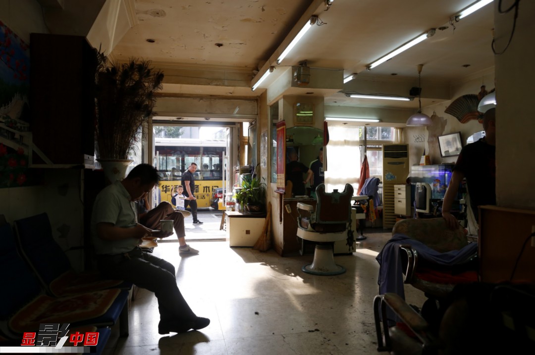 在社会高度发展的今天,孔雀理发店依然保留着自己不变的本色,理发师们坚守着传统技艺。新华网 姜冰摄