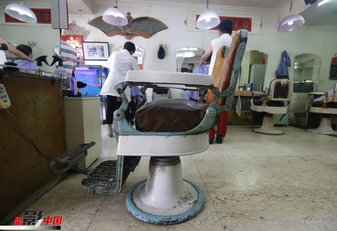 纯牛皮的外包,结实的骨架,孔雀理发店的理发椅从建店至今一直保留。新华网 姜冰摄