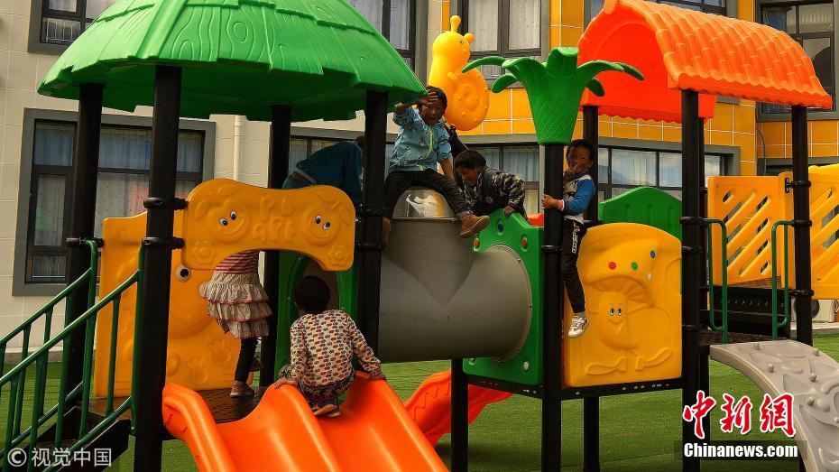 6月20日,拉萨,孩子们到达拉萨后尽情在游乐设施上玩耍。帛帛 摄 图片来源:视觉中国