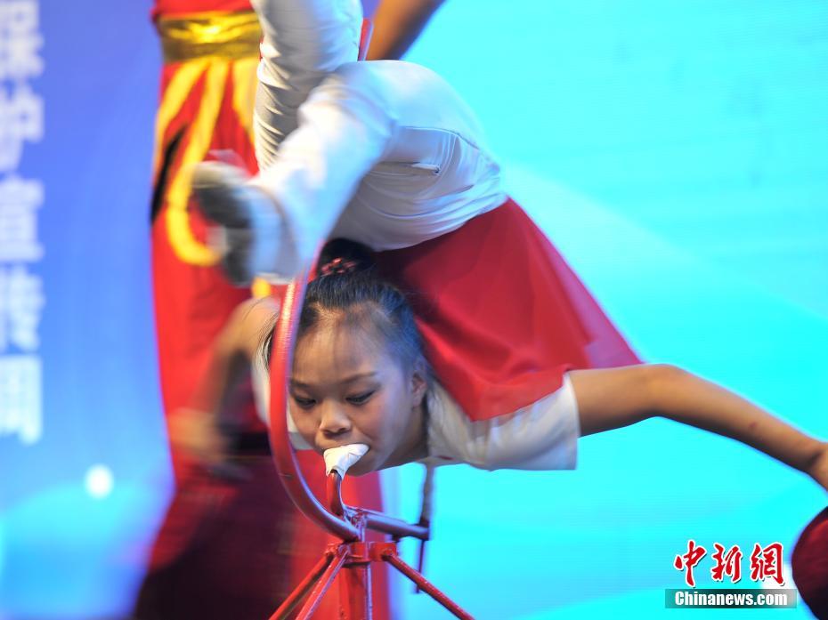 6月21日,一名小朋友正在表演沧州吴桥杂技。当日,第二届杭州市大运河世界文化遗产保护宣传周在杭州正式开幕。开幕式上,吴桥杂技、中国大运河沿线戏曲串烧、运河舞蹈等一系列运河文化传统节目,展现出千年古运文化的不朽传承。据了解,本次活动期间主办方还招募了一支“当代马可波罗使团”,重走大运河杭州段六大遗产点,沿着历史的轨迹,宣传保护世界文化遗产。中新社记者 张茵 摄