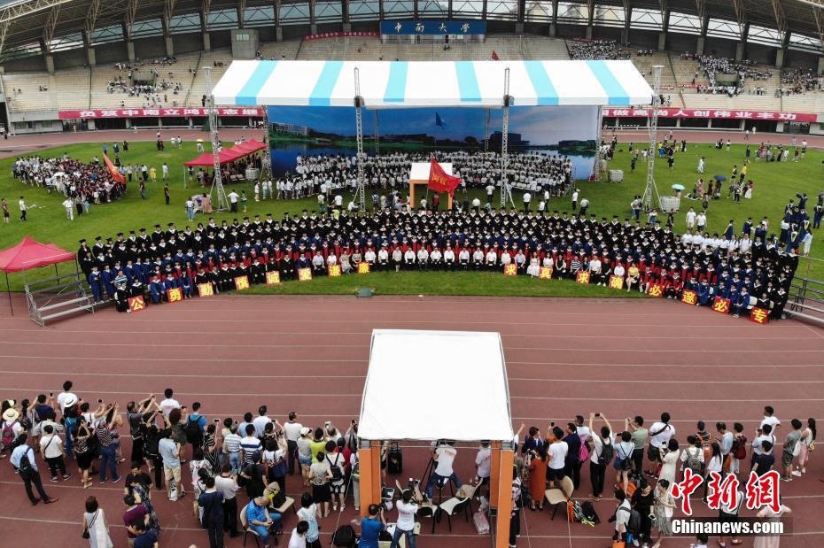 家长们围观毕业生们拍摄超长毕业照。杨华峰 摄