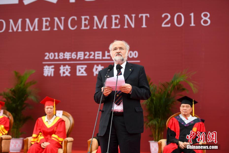 诺贝尔生理学或医学奖获得者厄温·内尔教授为毕业生们建言。杨华峰 摄