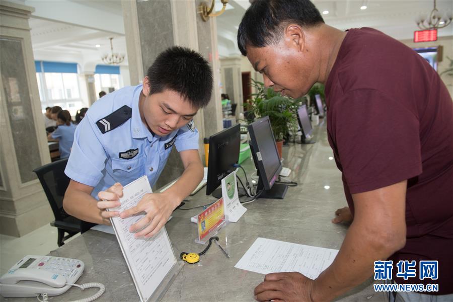 7月3日,在浙江省青田县公安局出入境办证中心,工作人员为一名西班牙归国华侨办理证件遗失证明。