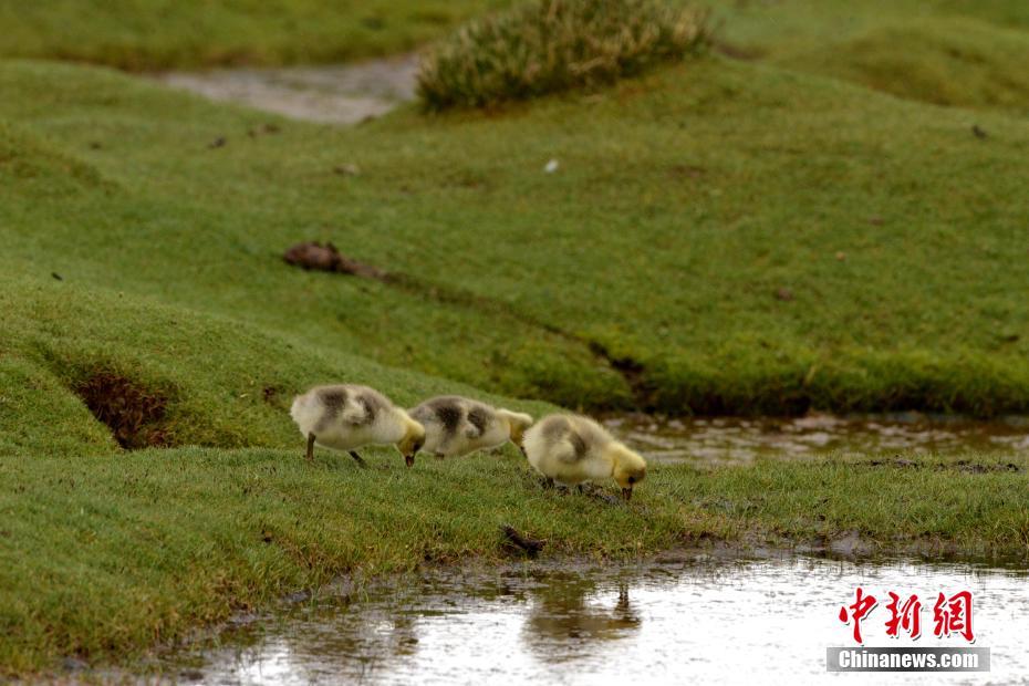 一群小斑头雁在湖边饮水。吐旦旦巴 摄