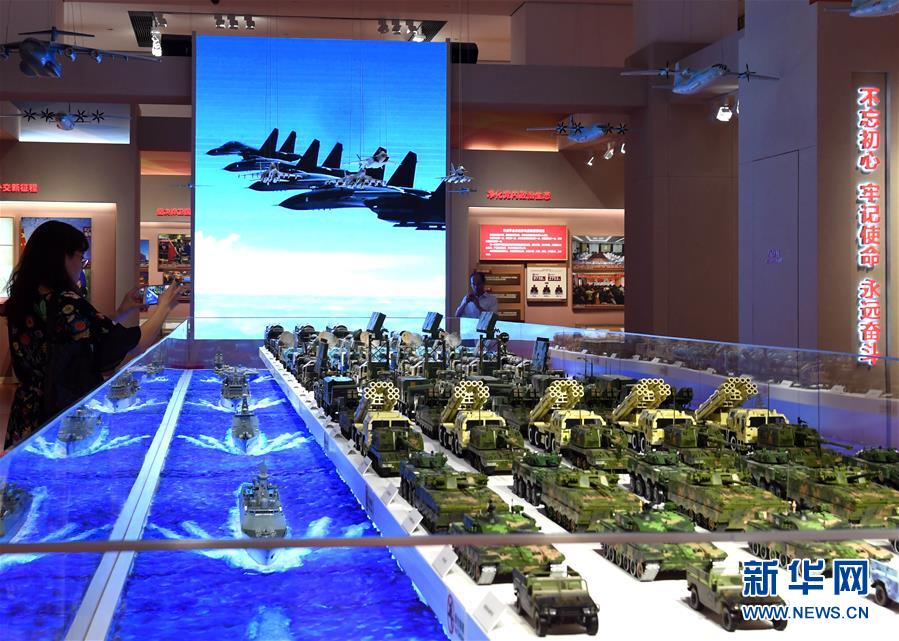 7月3日,观众参观兵器装备模型。 “复兴之路”大型主题展览丰富充实工作日前完成,新时代部分《不忘初心 砥砺奋进不断开创新时代中国特色社会主义事业新局面》1日在北京国家博物馆开展,7月3日起正式向公众开放参观。 新华社记者金良快摄
