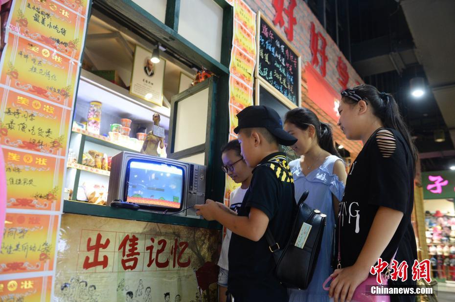 7月4日,小朋友体验FC游戏机。近日,内蒙古呼和浩特一商场内的怀旧“小卖部”吸引不少顾客,该销售怀旧零食、FC游戏机、旧二八自行车等物品,引来不少市民光顾。中新社记者 刘文华 摄
