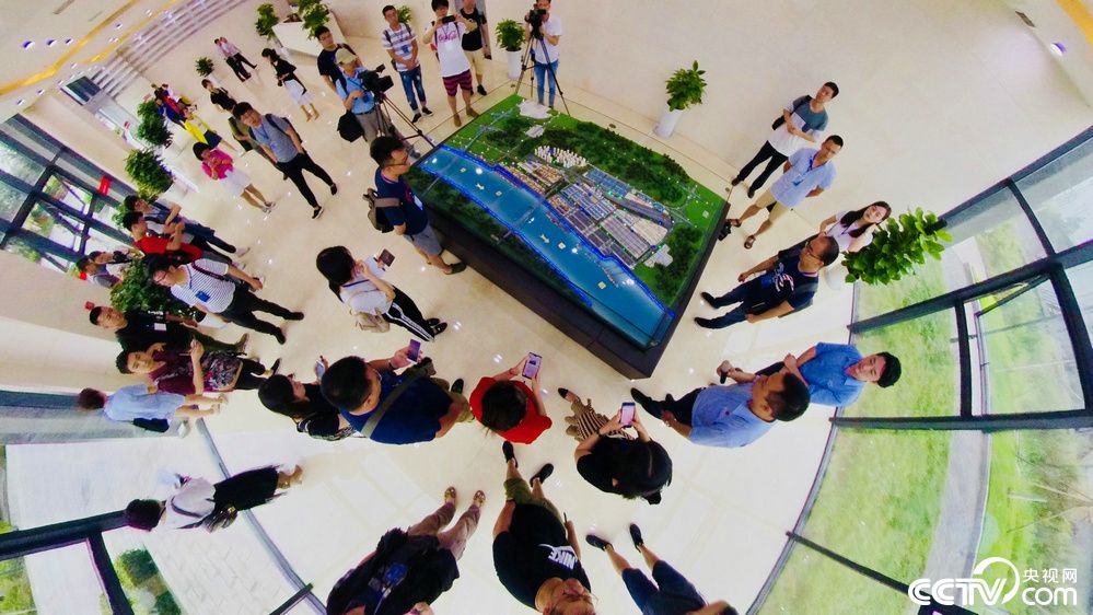 果园港港区拥有5000吨级泊位16个,设计年通过能力3000万吨,其中集装箱泊位10个,能力200万标箱;散货泊位3个,能力900万吨;商品汽车滚装泊位3个,能力100万辆。图为记者们在听相关负责人介绍果园港沙盘。
