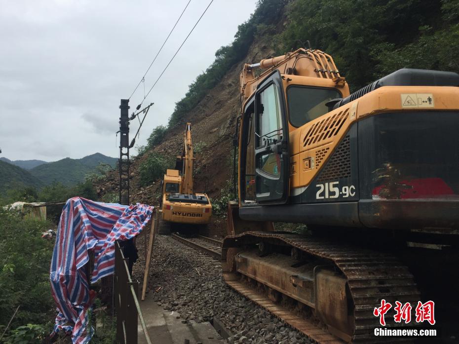 重型机械开赴山体崩塌现场。中国铁路西安局集团有限公司供图