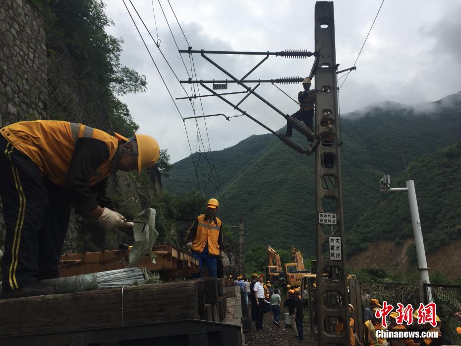 铁路职工全力抢修受损线路。中国铁路西安局集团有限公司供图