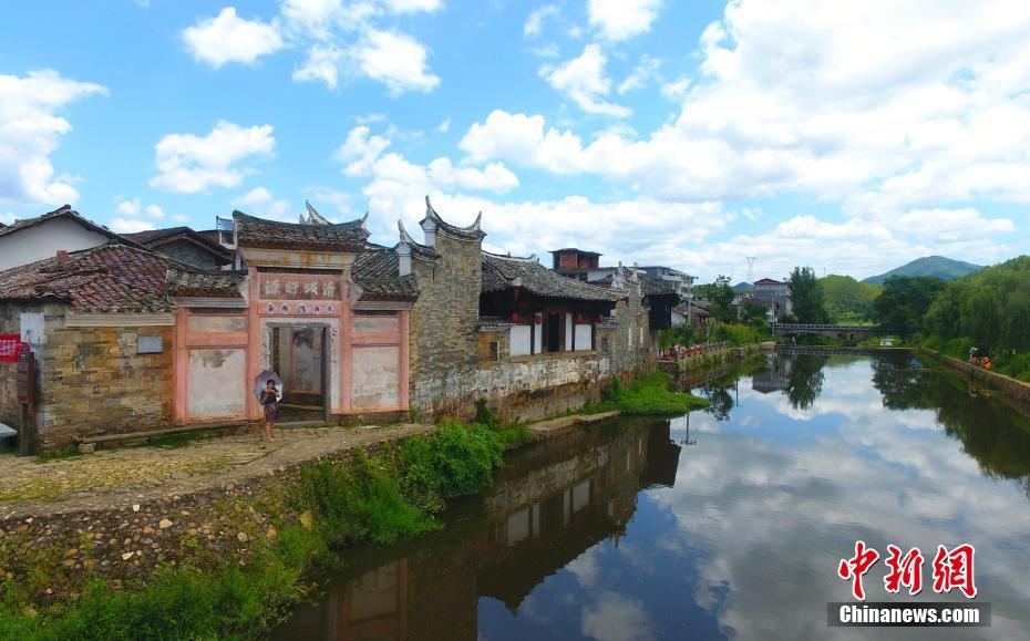7月15日,航拍江西广昌县驿前镇明清古建筑群中最有名的“船型”古屋。该建筑依水而建、座北朝南,酷似一艘逆水而上的官船。古屋占地540平方米,穿斗式结构,仿古代宫船而建造,有大小厅堂厢房30余间,门楣上刻有“清吸盱源”四字,檐板刻有流云花卉、人物图案,造型秀丽,远远望去酷似孤帆泊岸,故名“船型”古屋。刘占昆 摄