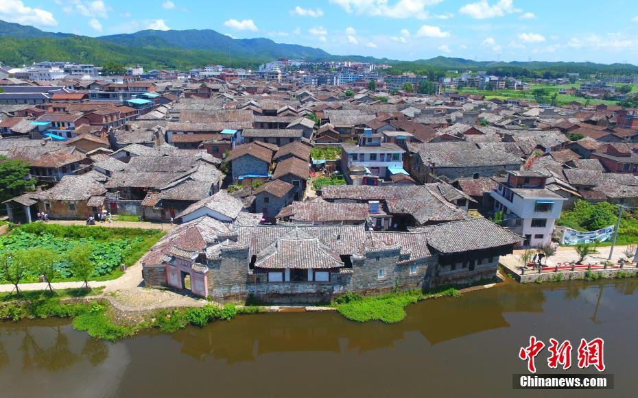 7月15日,航拍江西广昌县驿前镇明清古建筑群中最有名的“船型”古屋。该建筑依水而建、座北朝南,酷似一艘逆水而上的官船。古屋占地540平方米,穿斗式结构,仿古代宫船而建造,有大小厅堂厢房30余间,门楣上刻有“清吸盱源”四字,檐板刻有流云花卉、人物图案,造型秀丽,远远望去酷似孤帆泊岸,故名“船型”古屋。刘占昆 摄