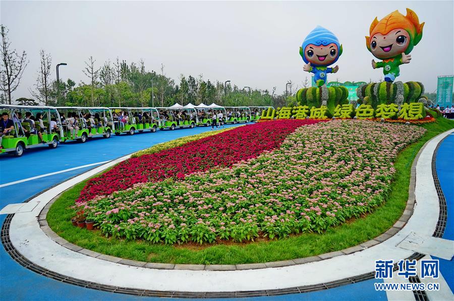 施工车辆行驶在修建中的沙漠公路上(7月9日摄)。