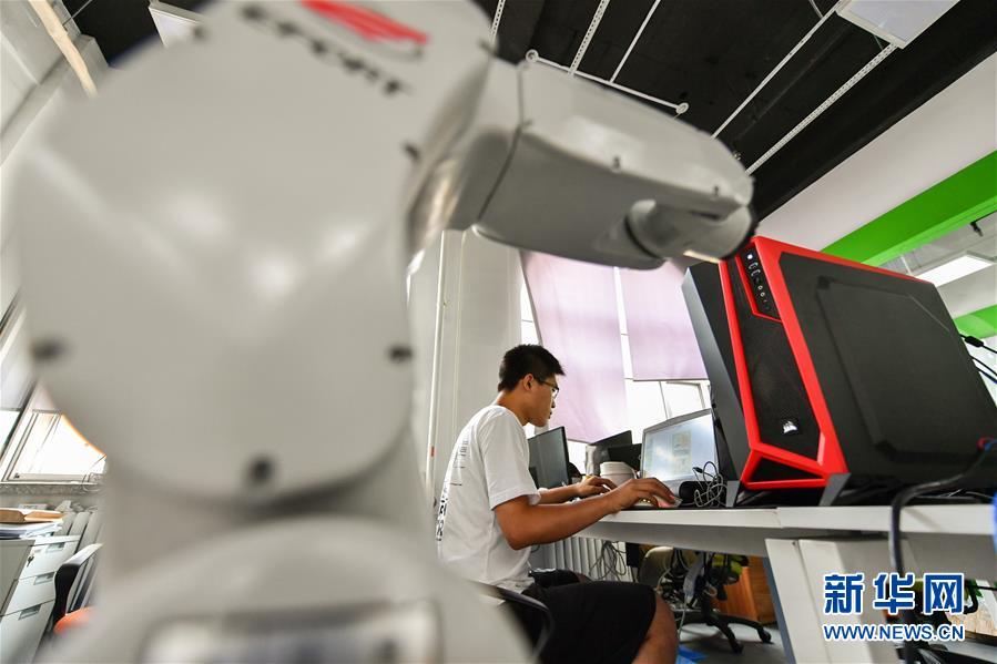 李蕴洲在位于哈尔滨工业大学大学生创新创业园的公司工作(7月17日摄)。 新华社记者 王松 摄