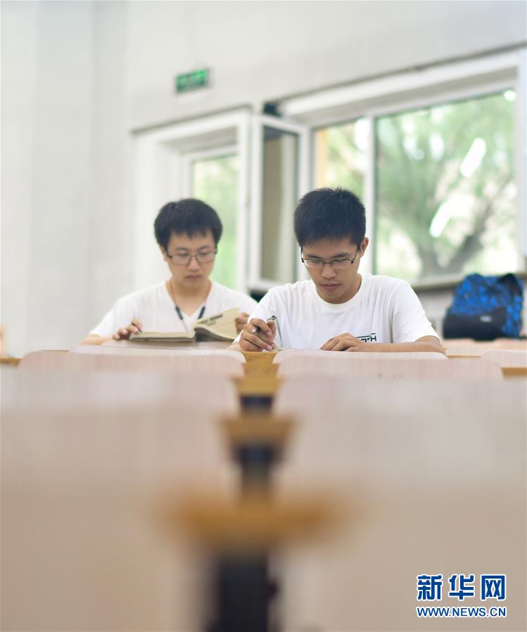 李蕴洲(右)与魏晋在哈尔滨工业大学自习室学习(7月17日摄)。 新华社记者 王松 摄