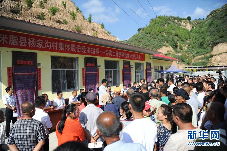 7月17日,米脂县杨家沟村举行2018年度合作社分红大会。 新华社记者 张博文 摄