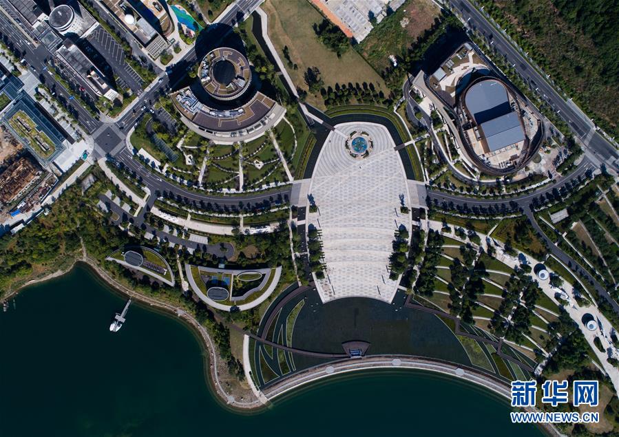 7月18日,空中俯瞰淳安经济开发区的珍珠广场(无人机拍摄)。新华社记者 徐昱 摄