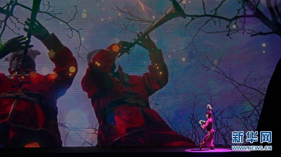 7月18日,一名舞蹈演员在慰问活动上为歌曲《圪梁梁》伴舞。 新华社记者 才扬摄