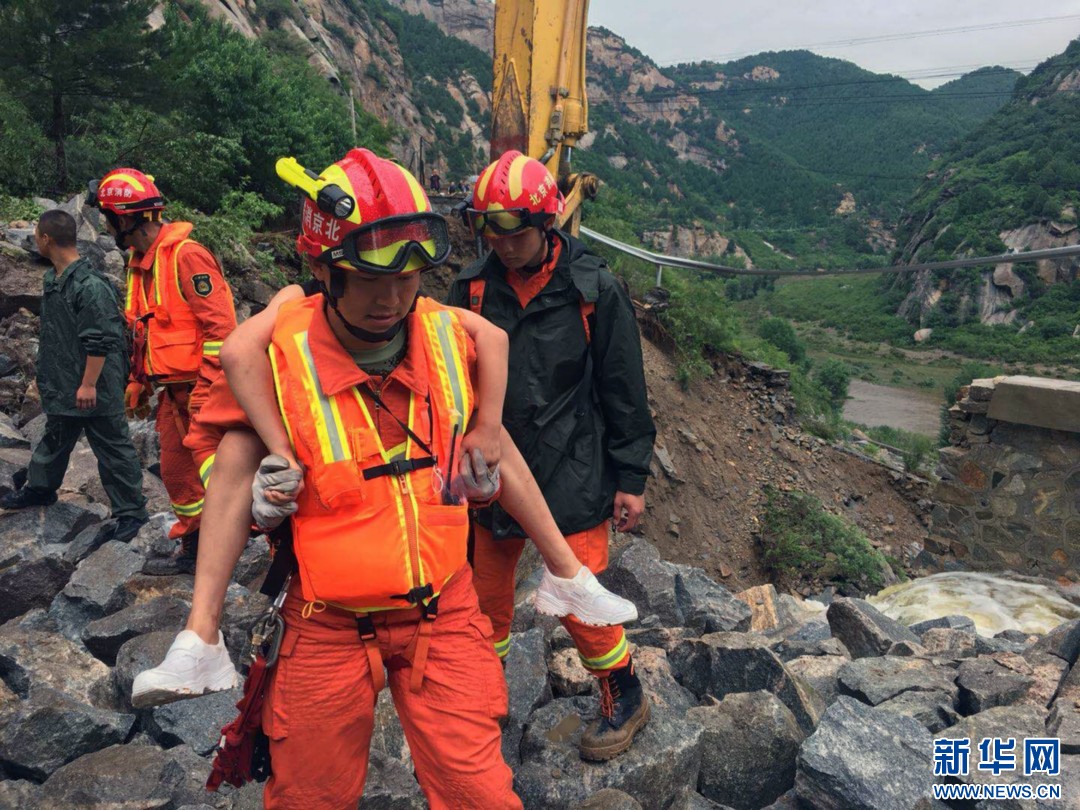 17日上午8点54分,北京市消防部门接到密云石城镇王满村被困游客报警,有大批游客被困。接到报警后,北京消防应急处置分队及时到达塌方现场开展营救疏散任务,经过5个小时的寻找搜救,共疏散人员103人。新华网发 北京市公安局消防总队供图