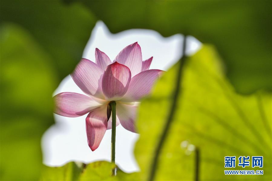 这是7月19日在山东省枣庄市台儿庄运河湿地公园拍摄的荷花。 新华社发(高启民 摄)