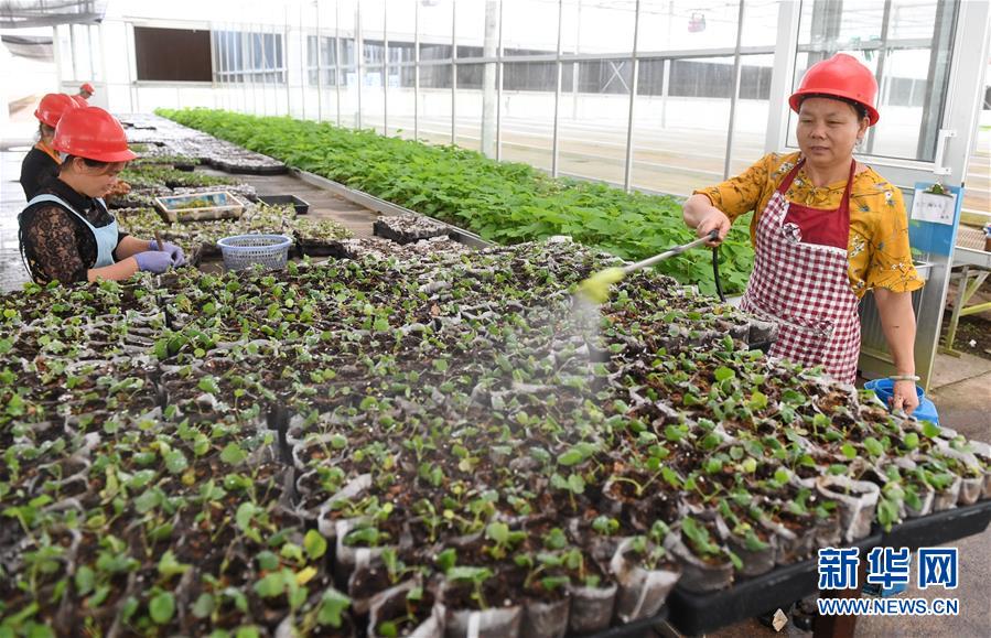 7月19日,将乐县万安镇良坊村低保户杨长珠(右)在一家生物科技有限公司里为苗木浇水。 作为福建省重点林业县,近年来,将乐县在扶贫开发实践中,发挥林业生态资源优势,依靠龙头企业带动,采取林地托管造林、“家庭式”苗木托管等多种生态产业扶贫模式,走出了一条生态产业扶贫的新路子。 新华社记者 林善传 摄