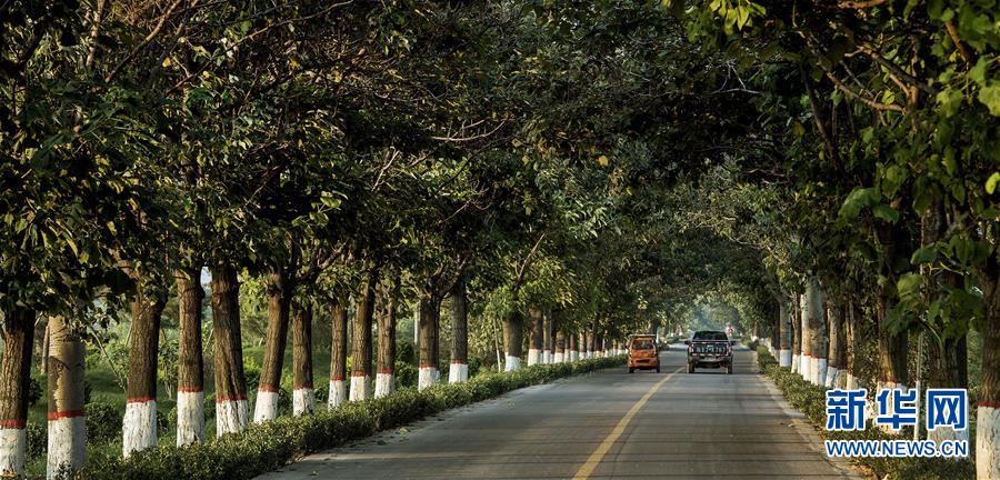 7月19日,汽车行驶在合阳县的乡村公路上。全县城镇乡村绿化同步提升,完成了20条道路绿化,主干道绿地率25.6%,次干道绿地率21%。新华社记者 陶明 摄