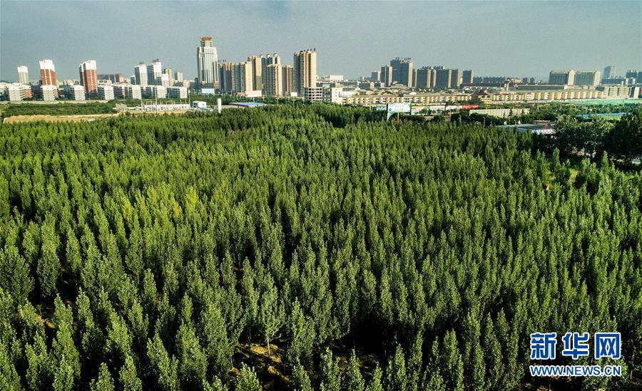 7月19日无人机拍摄的合阳县城金水生态公园。 新华社记者 陶明 摄