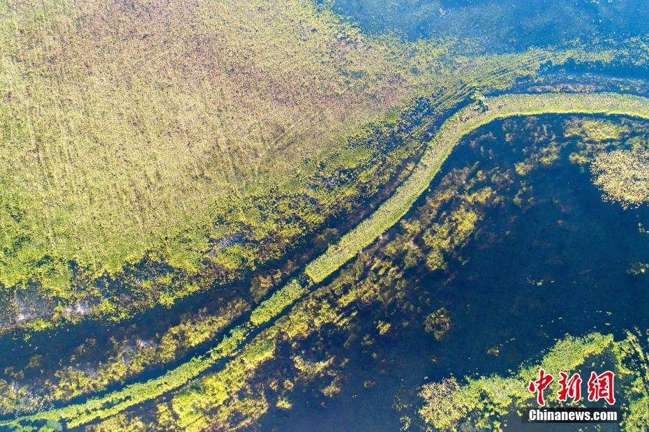 7月19日在江西九江市永修县吴城镇拍摄的鄱阳湖湿地风光。盛夏的鄱阳湖湿地水草碧绿,河道蜿蜒,在夕阳的映衬下,呈现出“落霞与孤鹜齐飞,湖水共长天一色”的美丽景观。中国第一大淡水湖鄱阳湖湿地是最早七个列入国际重要湿地名录的湿地之一,蕴藏着丰富的动植物资源和独特的自然景观。 傅建斌 摄