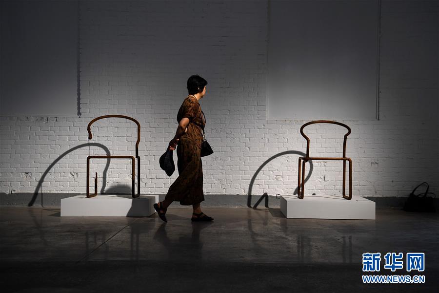 7月20日,游客在山西平遥古城柴油机厂展区参观。 7月20日,首届平遥国际雕塑节在山西平遥古城开幕。中国以及来自美国、德国等10余个国家的80余位艺术家、策展人齐聚古城,参展的百余件雕塑作品吸引游客前来观赏。 新华社记者詹彦摄