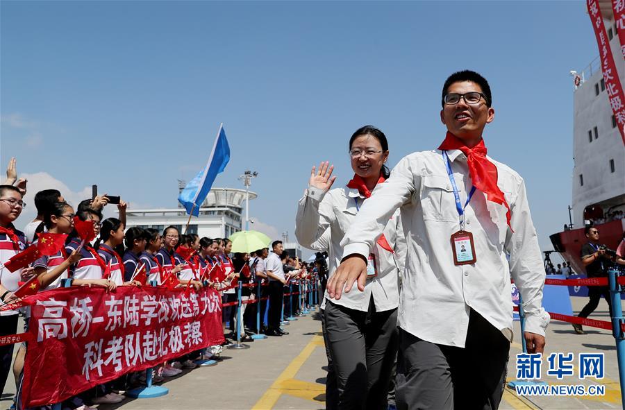7月20日,科考队员向欢送人群挥手告别。 新华社记者 方喆 摄