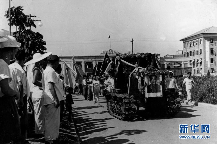 1958年7月20日,中国人自己制造的第一台拖拉机——东方红54履带拖拉机驶出一拖厂门(资料照片)。
