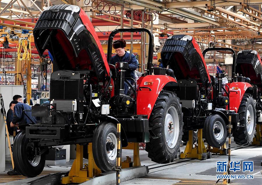 工作人员在位于河南洛阳的中国一拖集团有限公司第三装配厂的流水线上作业(2月11日摄)。