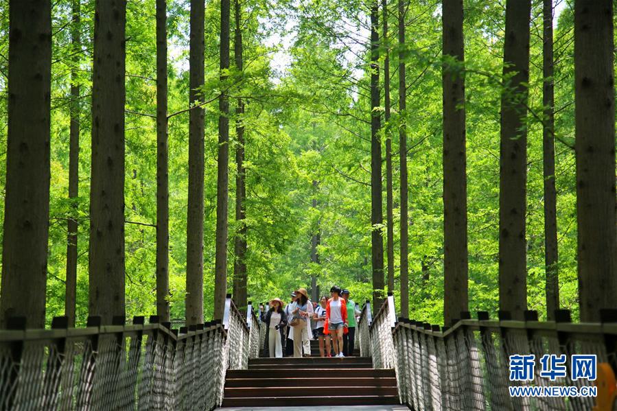 7月21日,游客在黄海国家森林公园游览。 新华社发(陈暐 摄)