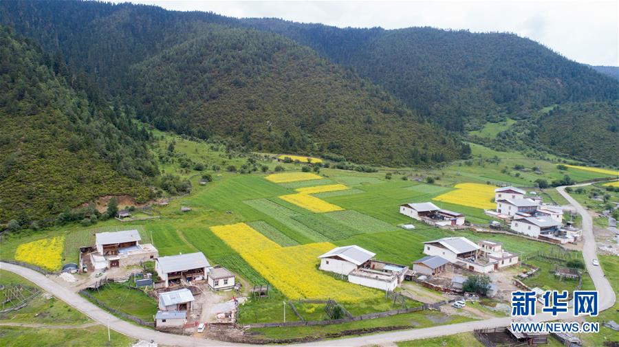 普达措国家公园洛茸村一景(7月18日无人机拍摄)。 新华社记者 胡超 摄