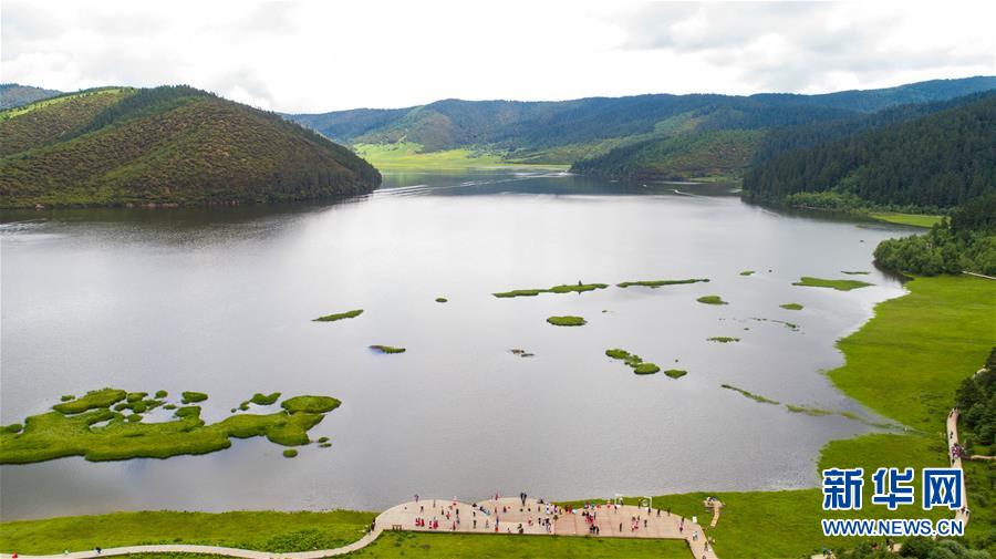 普达措国家公园属都湖风景(7月19日无人机拍摄)。 新华社记者 胡超 摄