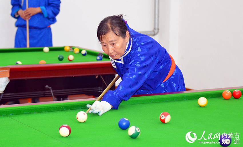 老人们参加社区台球
