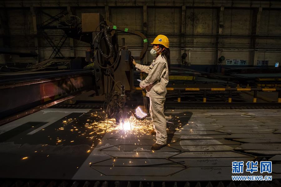 在沪东中华造船(集团)有限公司,工人在作业(7月5日摄)。小到牙刷、电池,大到汽车、轮船、大飞机……改革开放40年,中国制造坚持开拓,苦练内功,在与世界贸易伙伴携手共进中,逐渐融入全球贸易体系。新华社记者 沈伯韩 摄