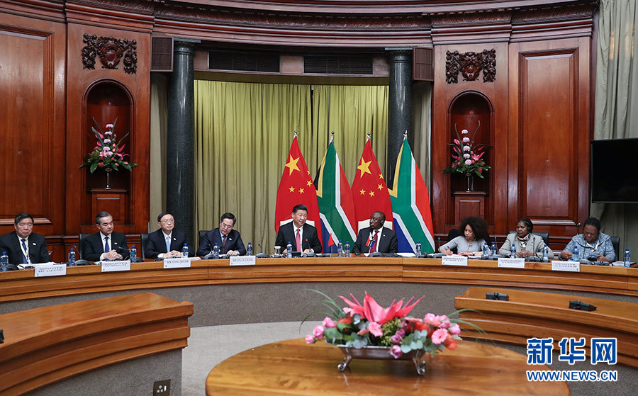 7月24日,国家主席习近平在比勒陀利亚同南非总统拉马福萨举行会谈。 新华社记者 谢环驰 摄