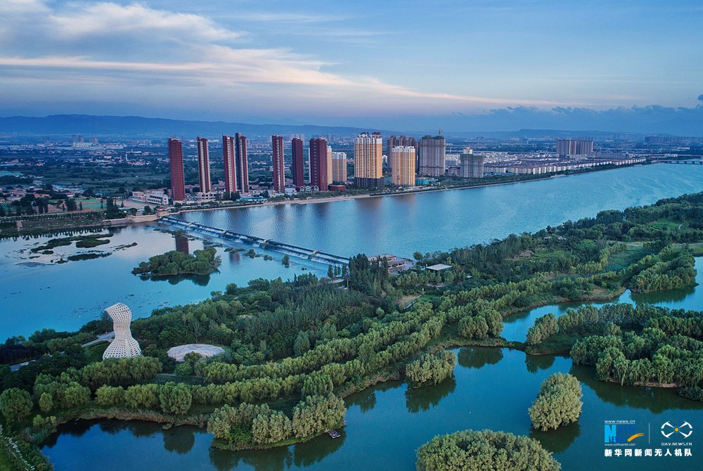 无人机视角下的西安浐灞湿地公园。新华网 申博望 摄