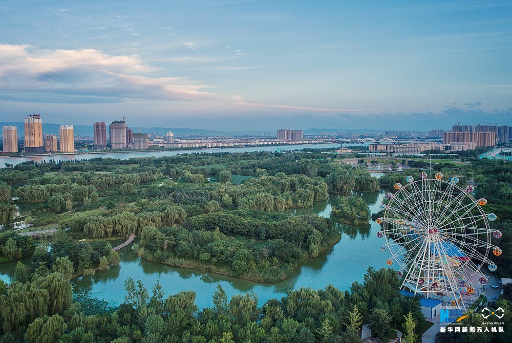 无人机视角下的西安浐灞生态区。新华网 张勇 摄