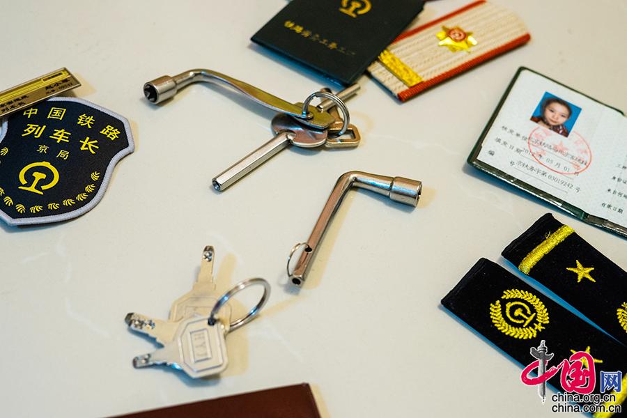 从绿皮车到复兴号好几把列车上使用的钥匙都被赵小琴保留着。早年的一把钥匙可能只是开关一下卫生间或者开关一下车门。而随着改革开放这些年铁路技术不断的发展进步,现在使用的钥匙虽然变小了,但是需要她打开的内容却变的更多了。中国网 郑亮摄