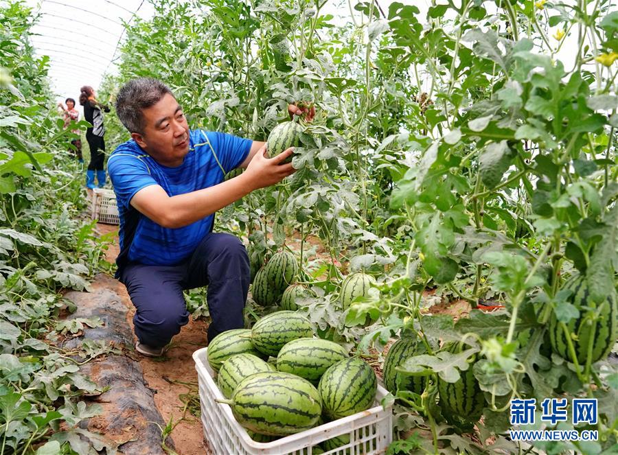 7月25日,张家口市宣化区塔儿村乡西庄子村驻村扶贫干部赵晓东在扶贫“牛奶西瓜”种植合作社的大棚内帮助社员采摘“牛奶西瓜”。 近年来,河北省张家口市宣化区依托扶贫开发的优惠政策,在实施精准扶贫过程中,大力发展设施蔬菜、瓜果、花卉等精品农业,取得良好效果。据介绍,该区特色种植园区和基地达100余个,带动8000余户农民脱贫致富。 新华社记者杨世尧摄